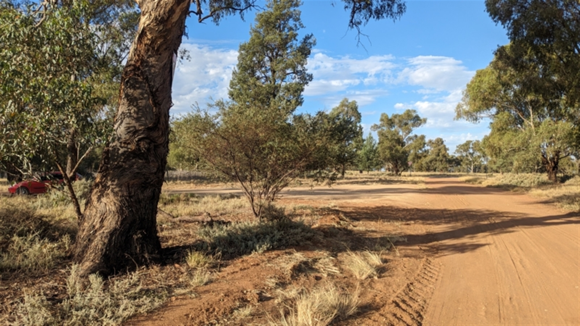 Single large grey mulga growing near the carpark